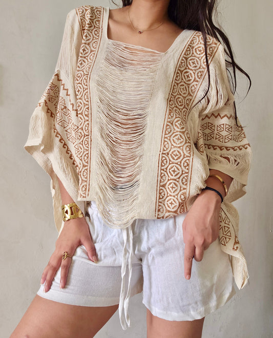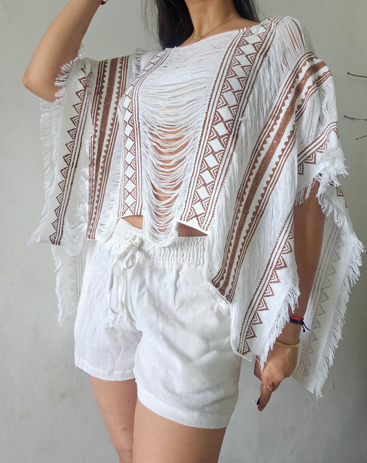 Natural beige poncho and shorts co-ord set
