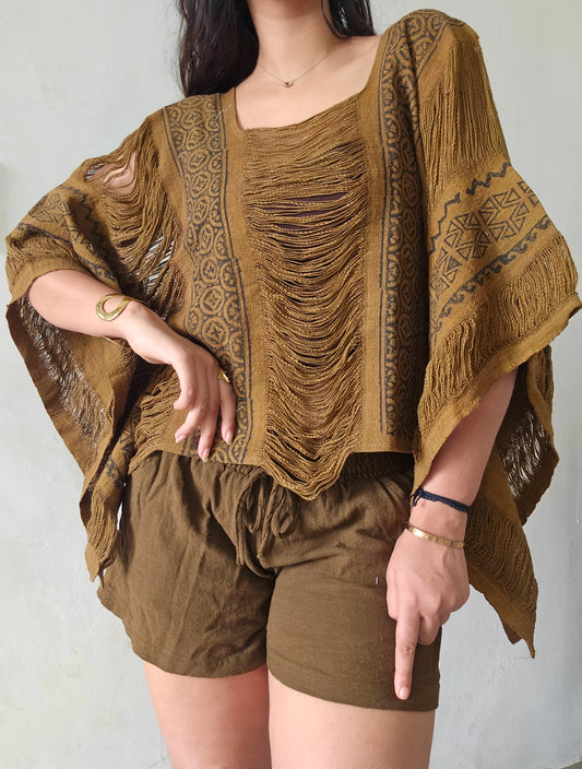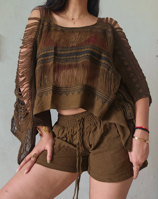 Rustwood mocha brown poncho and shorts co-ord set