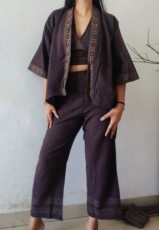 Organic Cotton Corset Co-ord Set – Sustainable Two Piece with Skirt | brown colour