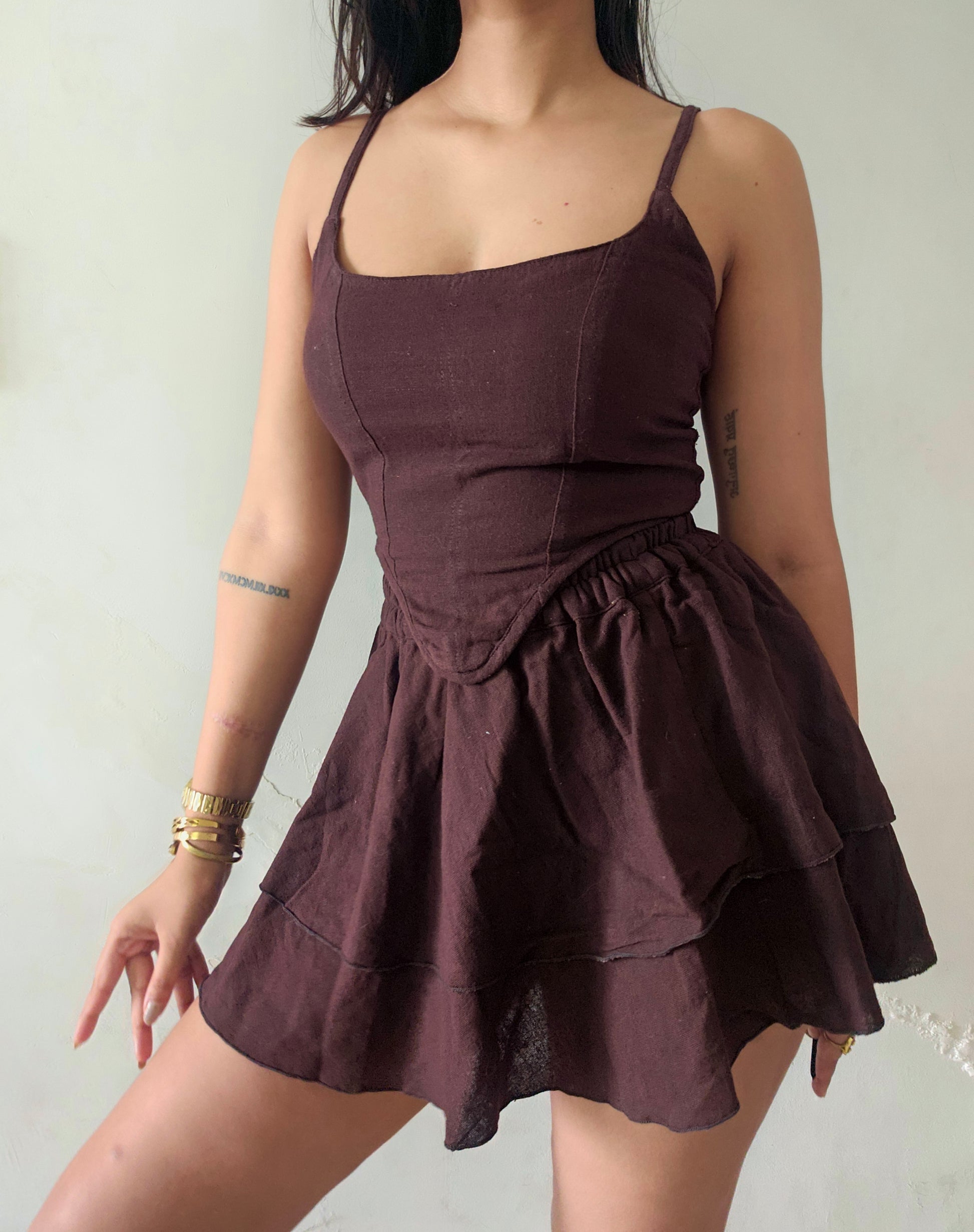 Organic Cotton Corset Co-ord Set – Sustainable Two Piece with Skirt | brown colour